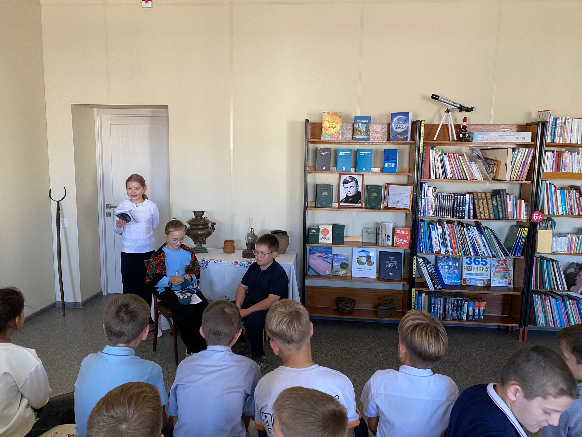 Ребят познакомили с биографией Леонида Семеновича, обратив их внимание на тот факт, что будущий поэт работал в 1958 году литературным сотрудником в издательстве газеты «Заря» Калманского района.
